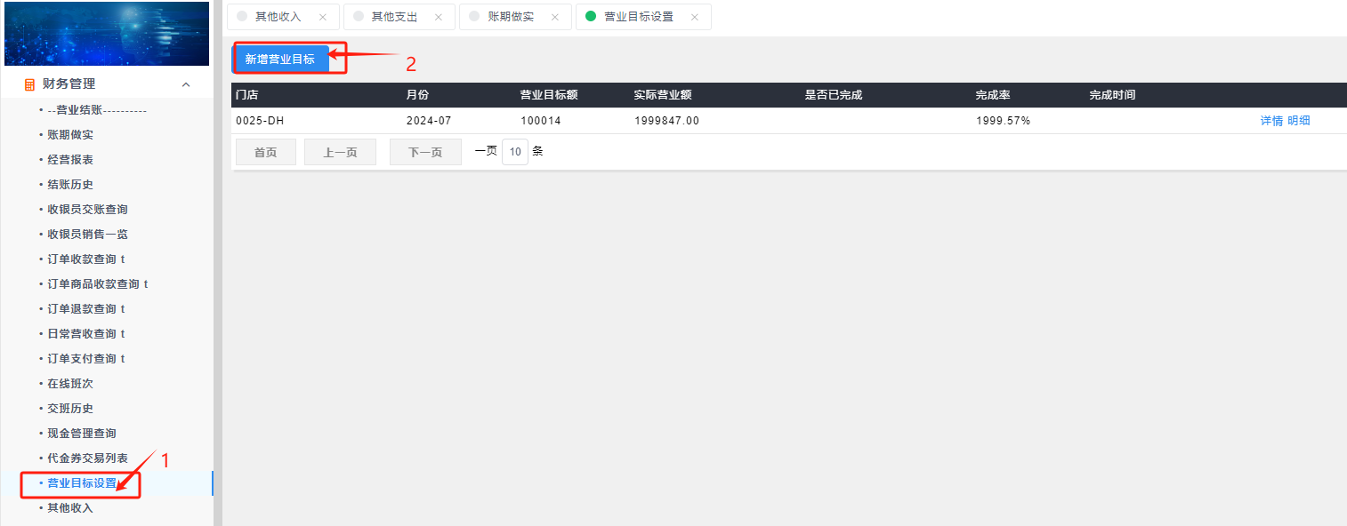 进入【财务管理】--【营业目标设置】--【新增营业目标】--填写内容--【确认保存】