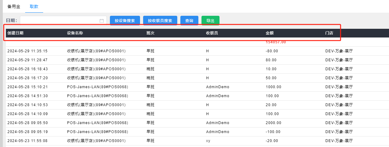 - 班次:取款的收银班次