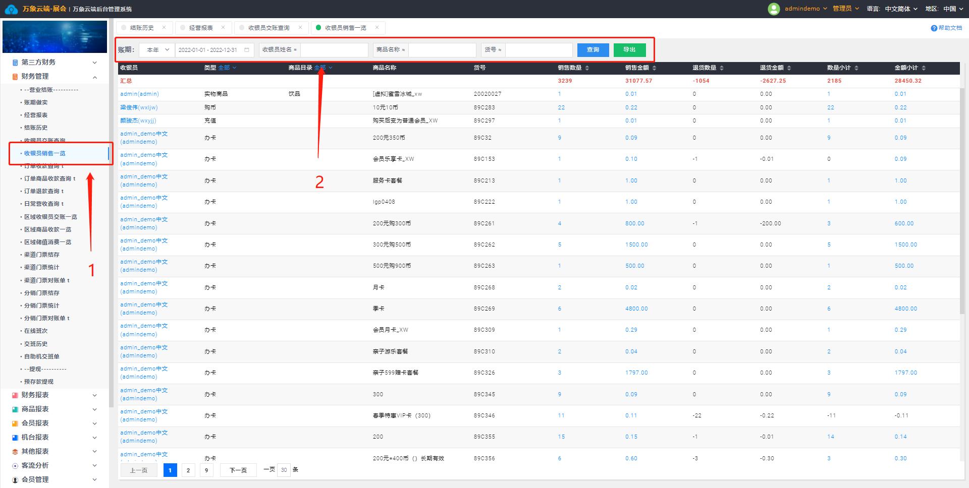1. 点击财务管理-收银员销售一览
