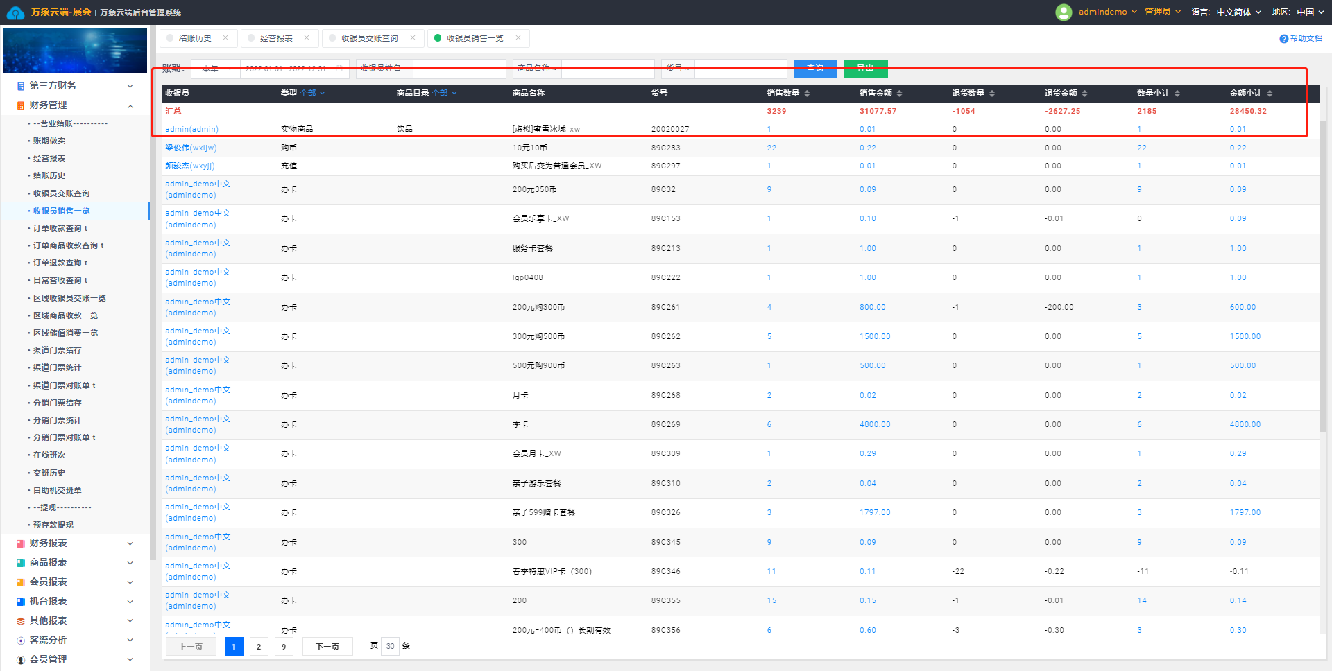 进入【财务管理】——【收银员销售一览】