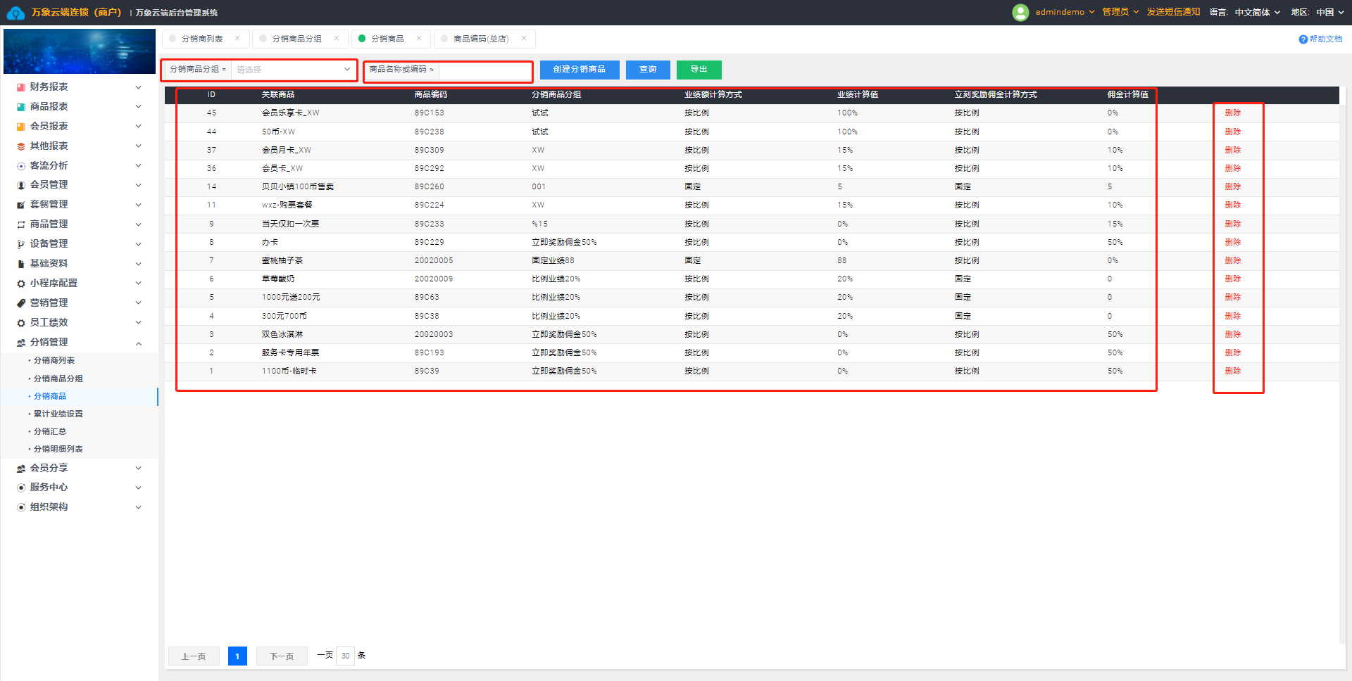 商品名称或商品编码:根据分销商品和商品编码进行搜索查询