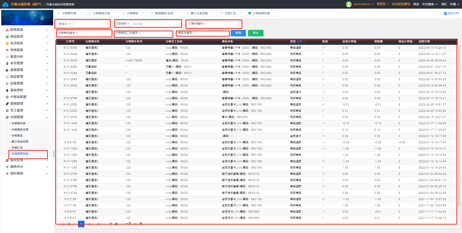 6. 分销员工关键字:根据分销员工名称关键字搜索查询