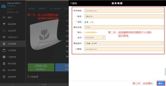 【会员管理】→【修改资料】