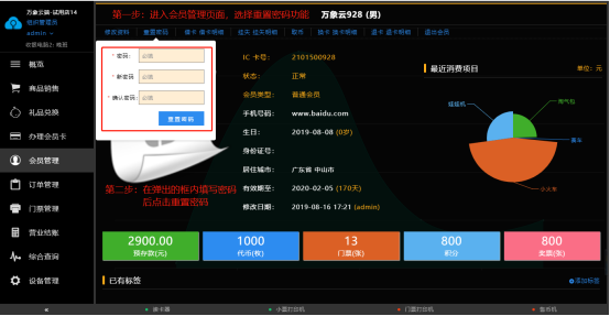 【会员管理】→【密码重置】