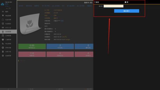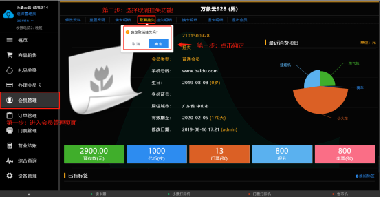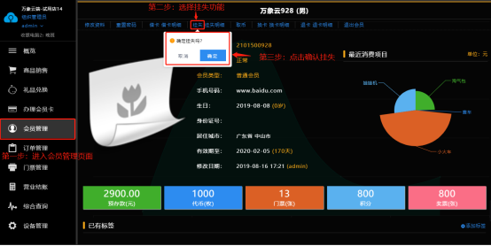 进入会员管理页面,点击挂失,在弹出的挂失框内点击确定即可