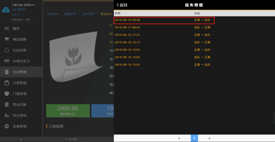 【会员管理】→【挂失明细】
