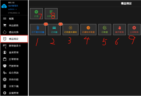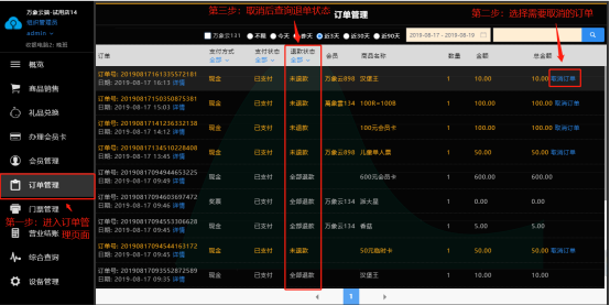 6. 客户取消、显示 由会员原因取消的记录(包括在柜台收银机取消,手机App上取消)