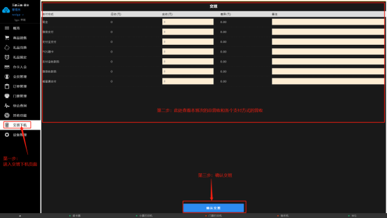 有当天班次营业的各种支付方式的营业总收入,还可以进行交班