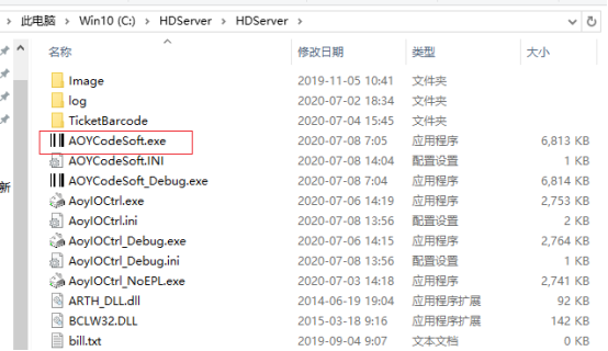 打开HDServer文件夹,AOYCodeSoft应用程序