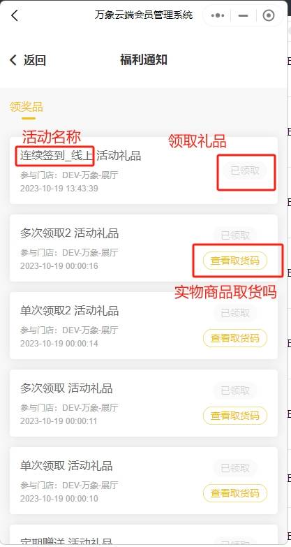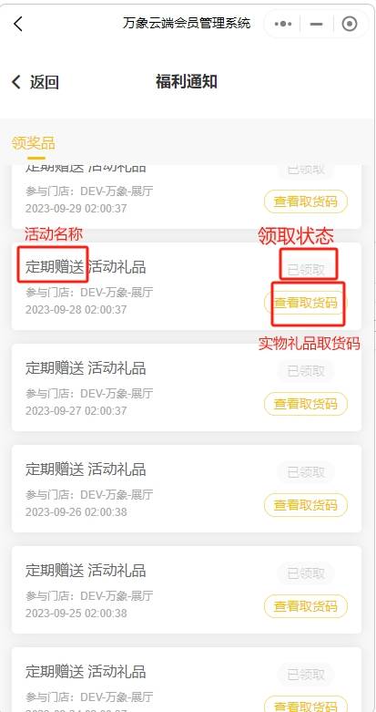 福利通知是指后台配置的营销活动的礼品领取通知以及定期赠送跟生日赠送活动礼品的领取,可以到小程序福利通知领取跟查看礼品