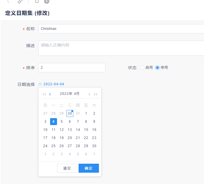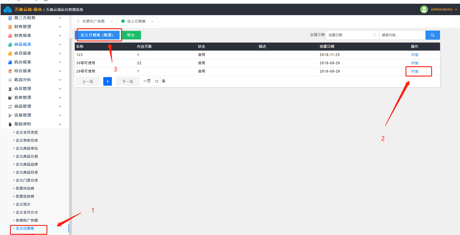 概述:日期集是预先自定义的集合,例如公众假期,寒假,暑假。 可以事先定义多个日期集,供不同套餐及商品/活动使用