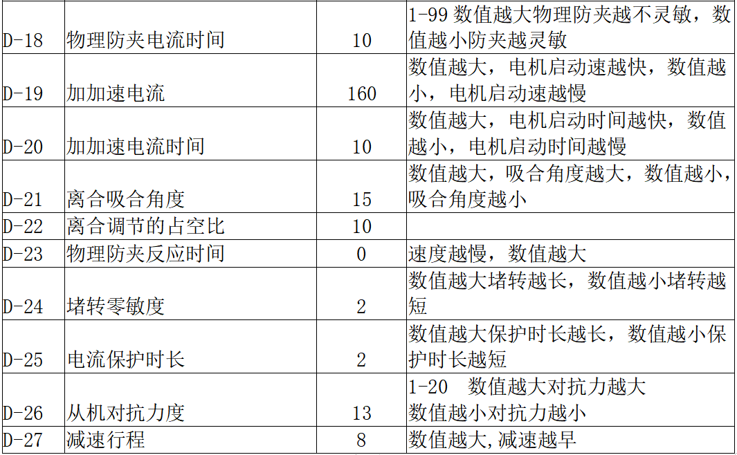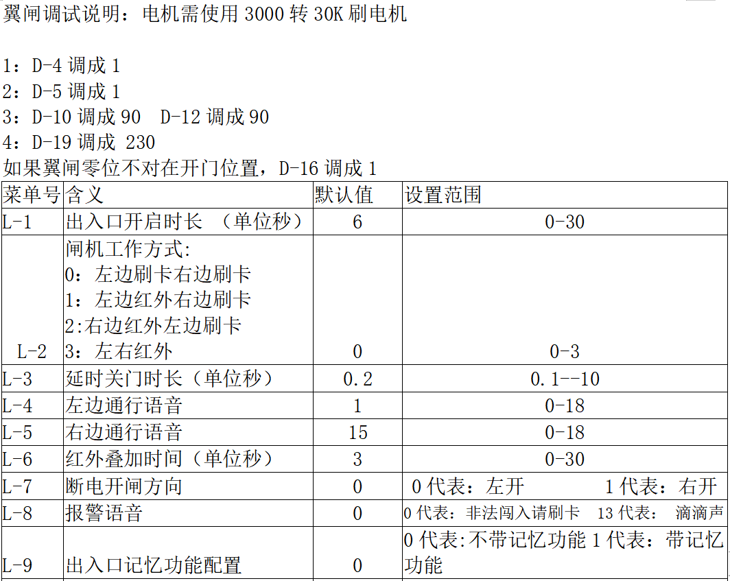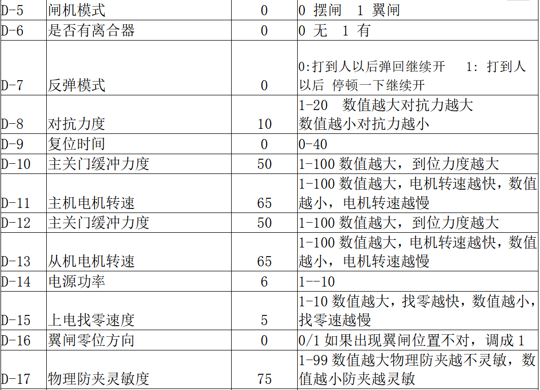 1.带离合器机芯调试防法:D-6 改成1D-8 改成2D-9 改成4D-10 D-12 改成15,前提要求机芯同心度做的要好,要不然门会出现不断开关如果想要快速,请使用24V10A开关电源,D19改成300,