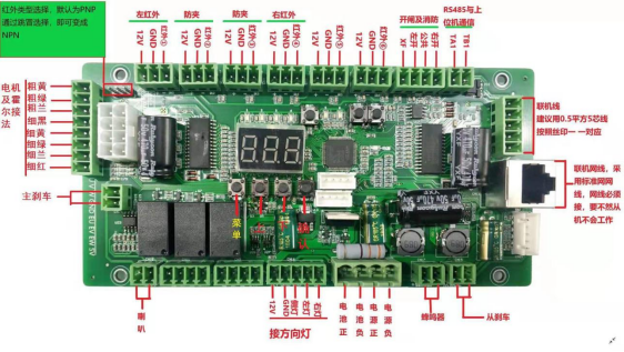 注意事项:1.待机下长按确定键进数显变成3个横杠 ,然后按上下按钮总共超过3次,按确定键恢复出厂出设置。2. 由于本控制板是一控二方式,用户至少使用一台24V /6.5安培以上的电源(电源输出功率不够不匹配时运行电流过载会导致电源频繁启动,电源输出功率越大电机对抗力度越大)。