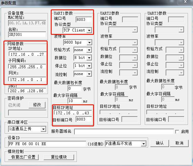在弹出的窗口中设名称为,ip 地址 172.16.0.27(不能跟其他设备重复)等,设置端口 8002,目标 ip 地址为服务器 ip(一般情况为 172.16.0.5),如下图: